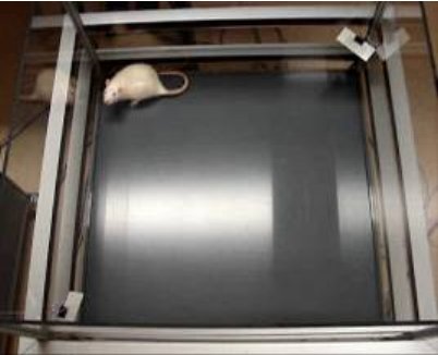 La forte expres­sion du trans­gène au niveau des bulbes olfac­tifs est à mettre en rela­tion avec une alté­ra­tion de la fonc­tion olfac­tive de nos rats avec l’âge. Or, l’un des premiers signes obser­vés chez les patients est une perte de l’olfaction. Notre rat présente donc les premiers symp­tômes de la mala­die de Parkin­son. Pour évaluer la fonc­tion olfac­tive de nos rats, nous avons mis au point diffé­rents tests. Tout d’abord, à l’âge d’une semaine, nous testons tous les nouveaux nés de notre élevage pour savoir si nos rats présentent une alté­ra­tion de la fonc­tion olfac­tive dès la nais­sance. Pour cela, nous avons mis au point un test basé sur la recon­nais­sance par le raton de l’odeur de sa mère. Pour cela, nous avons un dispo­si­tif à deux tiroirs (Fig 1). D’un côté, nous remplis­sons le tiroir avec de la sciure propre et de l’autre, avec de la sciure de la cage de la portée. Puis nous plaçons le raton au milieu du dispo­si­tif et nous obser­vons son compor­te­ment sur deux minutes. À une semaine, les rats sont encore aveugles et vont donc se dépla­cer unique­ment grâce à leur odorat. Tous nos rats, trans­gé­niques et témoins, ont le même compor­te­ment. Ils passent la majo­rité du temps de l’expérience au dessus du tiroir conte­nant la sciure de leur cage et recon­naissent donc les odeurs de leur portée et notam­ment celle de leur mère. Nos rats ne présentent donc pas de troubles de la fonc­tion olfac­tive à la nais­sance ce qui est encou­ra­geant puisque nous souhai­tons que le rat déve­loppe la mala­die avec le temps.